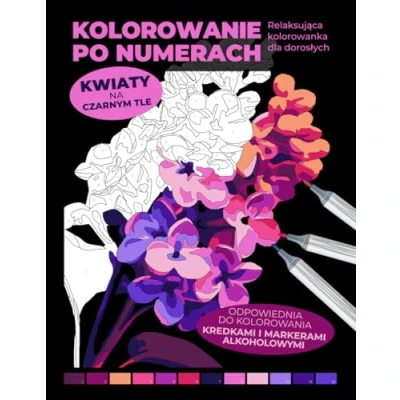 Kolorowanie po numerach Kwiaty na czarnym tle Relaksująca kolorowanka dla dorosłych, odpowiednia do kolorowania kredkami i markerami alkoholowymi