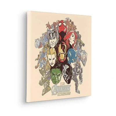 Features Spider-Man, Iron Man, Hulk and Co. Never get boring. This unique design is so stylish that it is suitable for any room. What honorable place the wall picture will get in your home? German quality fleece (155 g/m²) stretched on 2 cm thick, high-quality pine solid wood. Sturdy gallery stretcher frame, odour-free, smooth, resource-saving and FSC certified. Each stretcher frame picture is individually handmade at Komar Made in Germany. Our professional photographers and first-class designers ensure a high level visual experience. Komar Products has stood for innovative ideas, design and quality in the print sector since 1967. Brilliant, fade-resistant, waterproof and odourless colours. All our materials are solvent-free, phthalate-free and harmless in the interior. Suitable for children's rooms and bedrooms. Four clamping wedges for later reassembly are included. Easy to install on the wall with screw or nail.