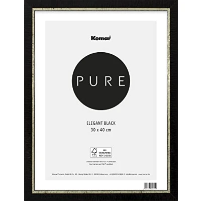 Komar BI 3040 EL B Wooden Picture Frame 30 x 40 cm with Highly Transparent Shatterproof Plastic/Acrylic Glass Black/Gold