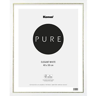 Komar BI 5070 EL W Wooden Picture Frame 40 x 50 cm with Highly Transparent Shatterproof Plastic/Acrylic Glass White/Gold