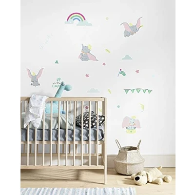Made in Germany: high-quality self-adhesive film. The decorative stickers are self-adhesive, can be removed without leaving any residue and can always be repositioned. Ideal for decorating children's rooms. Excellent image quality: our professional photographers and designers provide a high level visual experience. Easy to install: the pre-punched and self-adhesive decorative stickers are very easy to apply. Suitable for smooth surfaces such as walls, furniture, doors, mirrors, windows, furniture and tiles. Let's fly to the end of the world. The cute deco stickers for baby rooms, invite little explorers on a fantasy journey into the world of Disney's stories. They tell about the cute elephant Jumbo and his exciting adventures. Finally! The decorative stickers from Komar are here! All designs in the Komar brand shop at amazon.de/komar International products have separate terms, are sold from abroad and may differ from local products, including fit, age ratings, and language of product, labeling or instructions., Manufacturer: Komar