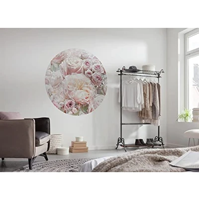 Komar DOT D1 072 Round and Self Adhesive Non Woven Photo Wallpaper Pink Cream Roses Diameter 125 cm Roses, Flowers, Wallpaper, Wall Sticker, Bedroom, Living Room, Decoration