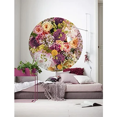 Komar Dot D1 102 Round and Self Adhesive Non Woven Photo Wallpaper Frescas Diameter 125 cm Floral, Flowers, Wallpaper, Wall Sticker, Bedroom, Living Room, Decoration