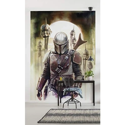Komar DX4 085 Vlies Fototapete Star Wars The Mandalorian Big Impaler Größe: 200 x 280 cm, 4 Bahnen, Bahnbreite 50 cm Tapete, Baby Yoda, Child, Mando Photographic Wallpaper, Brown, Black, White