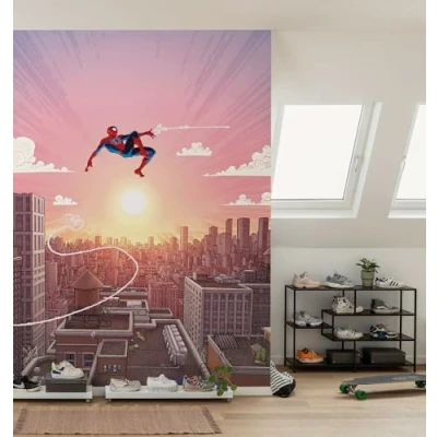 What a casual move! Spider-Man knows exactly how he sets himself in the scene and floats casually over the megacity. Illuminated by the glow of the setting sun and driven by incessant drive of action, the superhero shows himself in its full glory, ready to protect the city from any danger. German quality fleece (155 g/m²). Retains its shape, durable, odour-free, smooth and environmentally friendly. FSC certified product. Professional graphic designers guarantee a first-class visual experience. From design to print! 100% designed and made in Germany. Brilliant, fade-resistant, waterproof and odourless colours. All our materials are solvent-free, phthalate-free and harmless in the interior. Suitable for children's rooms and bedrooms. Apply paste to the wall to be wallpapered and attach the precisely fitting strips to the wall., Weight: 1.8298367746 pounds, Manufacturer: Komar