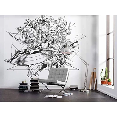 Komar IADX6 066 Non Woven Photo Wallpaper Avengers Black and White Size: 300 x 280 cm (Width Height) Children's Bedroom Superhero