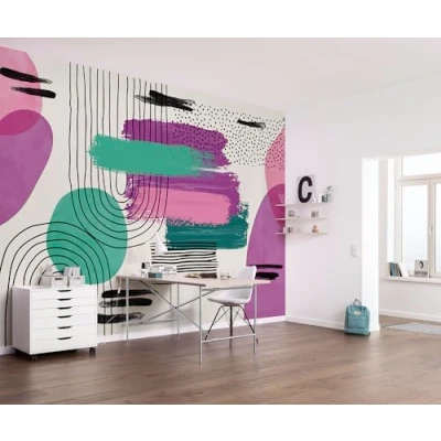 This wallpaper in an appealing mix of purple, pink and turquoise captures the spirit of retro design with its diverse patterns, shapes and colours, bringing the signature retro look to any home. A real eye-catcher that is guaranteed to stand out. German quality fleece (155 g/m²). Retains its shape, durable, odour-free, smooth and environmentally friendly. FSC certified product. Panel width: 50 cm. Our professional photographers and designers ensure a high level visual experience. From design to print, made in Germany. Brilliant, fade-resistant, waterproof and odourless colours. All our materials are solvent-free, phthalate-free and harmless in the interior. Suitable for children's rooms and bedrooms. Includes assembly instructions (English language not guaranteed). Apply paste to the wall to be wallpapered and attach the precisely fitting strips to the wall. No bubbles or wrinkles., Weight: 3.086471668 Pounds, Manufacturer: Komar