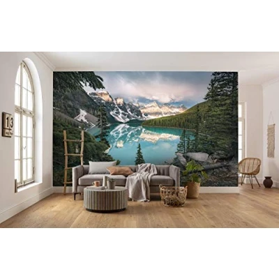 Look ✓ digital print fleece photo wallpaper from Komar: The Lake Moraine in the Canadian National Park Banff is framed by forests and mountains. Beautifully beautiful. Material ✓ German quality fleece (150 g/m2). Retains its shape, durable, odorless, smooth and environmentally friendly. FSC Certified Product Width 50 cm. Image quality ✓ Our professional photographers and designers provide a high level of visual experience. From design to printing, made in Germany. Printing ✓ Brilliant, lightfast, waterproof and odourless colours. All our materials are solvent-free, phthalate-free and harmless in the interior. Suitable for children's bedrooms and bedrooms. Easy to install, includes assembly instructions: apply the paste on the wall to be wallpapered and attach the precisely fitting strips to the wall. No bubbles and wrinkles., Weight: 0.661386786 pounds, Manufacturer: Komar