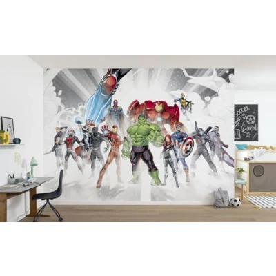 Hulk, Captain America or Thor? All Marvel superheroes are gathered here and fight against evil together with their superpowers. German quality fleece (155 g/m²). Retains its shape, durable, odour-free, smooth and environmentally friendly. FSC certified product. Professional graphic designers guarantee a first-class visual experience. From design to print! 100% designed and made in Germany. Brilliant, fade-resistant, waterproof and odourless colours. All our materials are solvent-free, phthalate-free and harmless in the interior. Suitable for children's rooms and bedrooms. Apply paste to the wall to be wallpapered and attach the precisely fitting strips to the wall., Weight: 2.20462262 pounds, Manufacturer: Komar