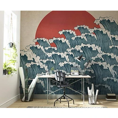 Komar Non Woven Photo Wallpaper Nami 70s Sunset Sea Living Room Bedroom Decoration Size: 300 x 280 cm (Width Height) 6 Panels Width 50