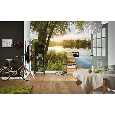 A quiet place by the lake is balm for the soul. Let your feet dangle in the shallow water, enjoy the animal sounds and be easy - these feel-good moments also succeed with the matching photo wallpaper in your own home. Choose nature motif, decorate and enjoy. German quality fleece, dimensionally stable, odourless, smooth and environmentally friendly. FSC certified product Our professional photographers and designers provide a visual experience at a high level. Brilliant, light-resistant, waterproof and odourless colours. All our materials are solvent-free, phthalate-free and harmless in the interior. Apply paste to the wall to be wallpapered and apply the precisely fitting strips to the wall, Weight: 4.38 pounds, Manufacturer: Komar