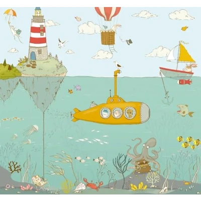 Ship ahoy! And off the cheerful ride in the small yellow subboat. What the three friends will discover everything underwater? German quality fleece (155 g/m²). Retains its shape, durable, odourless, smooth and environmentally friendly. FSC certified product Roll width: 50 cm. Our professional photographers and designers provide a visual experience at a high level. From design to print, made in Germany. Brilliant, light-resistant, waterproof and odourless colours. All our materials are solvent-free, phthalate-free and harmless in the interior. Suitable for children's rooms and bedrooms. Fitting instructions included Apply paste to the wall to be wallpapered and apply the precisely fitting strips to the wall. No bubbles or wrinkles., Weight: 2.8880556322 pounds, Manufacturer: Komar