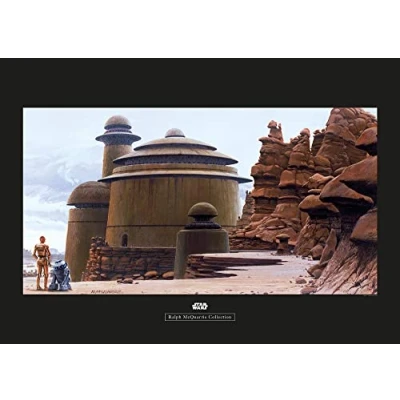 ❤ The two droids R2-D2 and C-3PO on their way to Jabba's Palace to free their captured companions. German premium poster photo paper with silk matte surface and high light resistance. For photo-realistic prints with razor-sharp details and excellent colour brilliance for vibrant colours. PVC free and FSC certified product Our professional photographers and designers provide a visual experience at a high level. From design to print, made in Germany. Light-resistant, waterproof and odourless inks with long-lasting colour brilliance. All our materials are solvent-free, phthalate-free and harmless in the interior. Suitable for children's rooms and bedrooms. The wall picture is delivered rolled in a sturdy cardboard sleeve (frame not included).