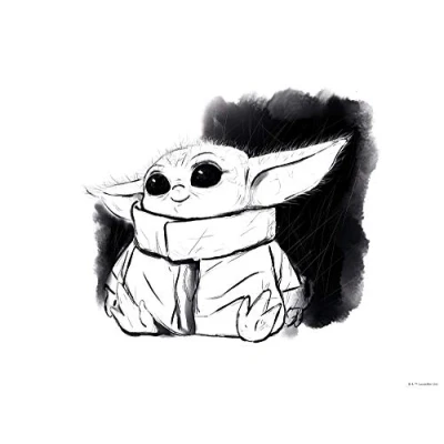 Komar Star Wars Mandalorian The Child Sweet Black White Baby Yoda, Decoration, Wall Picture, Poster, Art Print, Size 70 x 50 cm Without Frame WB SW 011 70x50, Black,