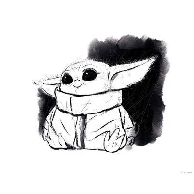 Komar Star Wars Wall Picture Mandalorian The Child Sweet Black White Decoration, Poster, Art Print Size 40 x 30 cm WB SW 011 40x30