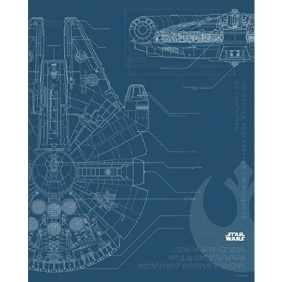 Komar Wall Picture Star Wars Blueprint Falcon WB176 40 x 50 cm (W H), Colourful for Children's Room, Teenager's Decoration, Art Print, Without Frame