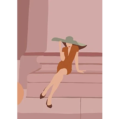 On a balmy summer night, the elegantly dressed lady adjusts the hat that covers her face. She sits posing on a staircase and looks in the direction of her viewer. 💚 High-quality material: German premium poster photo paper with silky matte surface and high light resistance. For photo-realistic prints with crisp detail and superb colour brilliance for vibrant colours. PVC free and FSC certified product. Made in Germany: our professional photographers and designers ensure a visual experience at a high level. From design to print. Professional printing: Fade-resistant, waterproof and odourless printing inks with long-lasting colour brilliance. All our materials are solvent-free, phthalate-free and harmless in the interior. Suitable for children's rooms and bedrooms. Easy to install: the poster is delivered rolled in a sturdy cardboard sleeve (without frame).