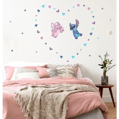These stickers radiate pure love. The enchanting depiction of Stitch and Angel, surrounded by sweet hearts in blue and pink, creates a sugar-sweet atmosphere and beautifies Disney fans' nurseries. High quality self-adhesive film. The decorative stickers are self-adhesive, removable without leaving any residue and can always be replaced. Our professional photographers and designers ensure a high level visual experience. Brilliant, fade-resistant, waterproof and odourless colours. All our materials are solvent-free, phthalate-free and harmless in the interior. The already punched and self-adhesive decorative stickers are very easy to apply. Suitable for smooth surfaces such as walls, doors and windows., Manufacturer: Komar