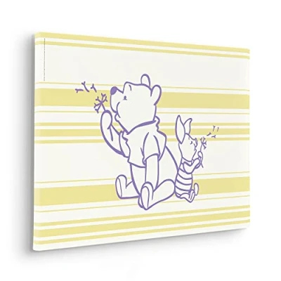 Dandelion fun with Winnie the Pooh and his friend Piglet. This motif simply creates a good mood and makes young and old viewers dream of carefree summer wear. Material: German quality fleece (155 g/m²) stretched on 2 cm thick, high-quality pine solid wood. Sturdy gallery stretcher frame, odour-free, smooth, resource-saving and FSC certified. Each stretcher frame picture is individually handmade at Komar Made in Germany. ✓ IMAGE QUALITY: Our professional photographers and first-class designers ensure a visual experience at a high level. Komar Products has stood for innovative ideas, design and quality in the print sector since 1967. ✓ PRINTING: Brilliant, fade-resistant, waterproof and odourless colours. All our materials are solvent-free, phthalate-free and harmless in the interior. Suitable for children's rooms and bedrooms. ✓ Assembly: Four clamping wedges for later reassembly are included. The stretcher frame can be easily attached to the wall standing or with screw or nail.