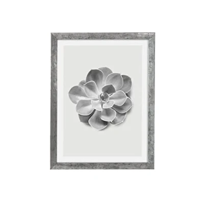 Komar Wooden Picture Frame Stone Silver with Art Poster Succulent Aeonium as a Set Size: 30 x 40 cm Wall Picture, Decoration, Flower, Black/White