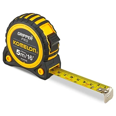 General description The Komelon Gripper™ Tape is a durable measuring tape designed for precision and convenience. It features a nylon-coated blade with both metric and imperial markings, a true zero end-hook, and a top blade lock for accurate measurements. The tape is housed in an ergonomic ABS case with a rubber outer layer for enhanced durability and protection, and it includes a handy belt clip for easy carrying. Technical specifications Blade Length: 5m / 16ft Blade Width: 19mm Accuracy: Class II Part Number: KG516E EAN: 8803005001933 Compatibility and accessories Designed for general measuring tasks in DIY and home improvement projects Includes a belt clip for portability Usage Use for measuring lengths, widths, and heights in various DIY projects Lock the blade in place with the top lock for accurate readings Retract the tape smoothly after use Other information