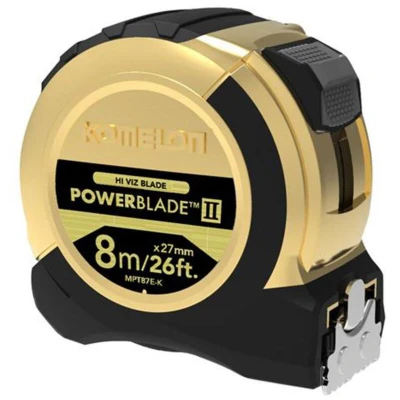 Komelon MPT87EG PowerBlade II 8m/26ft dual printed hi vis blade, nylon coated for durability, magnetic end hook, ergonomic ABS case with rubber grip. EC Class accuracy.
