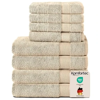 Komfortec 4X towels 50x100 cm and shower 70x140 Set Terrycloth Bath Towel & Hand Large 100% cotton soft Quick drying Sand/beige