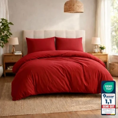 Komfortec Premium Bed Linen 240 x 220 cm with 2 Pillowcases 40 80 Brushed Microfibre Set Red