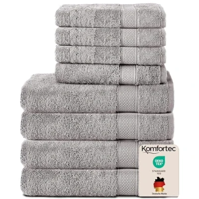 Komfortec Set of 8 Hand Towels 100% Cotton, 4 Bath 70 x 140 cm and 50 100 cm, Terry Clothing, Soft, Large, Silver