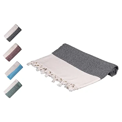 Komfortec XXL Beach Towel, 100 x 180 cm, Made of 100% Cotton, Hammam Towel and Sauna Classic Peshtemal, Absorbent Quick Drying, Black