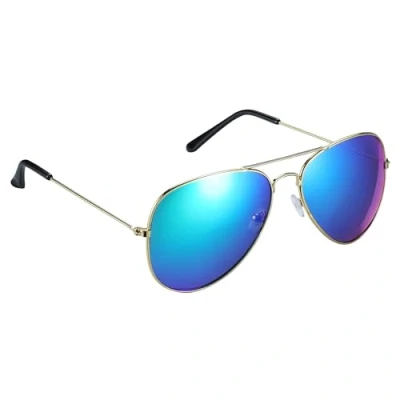 Komonee Pilot Style Blue Shimmer Lens Sunglasses Designer Unisex Mens Womens UV400 Classic Shades Great For Cycling Golf Fishing Sports