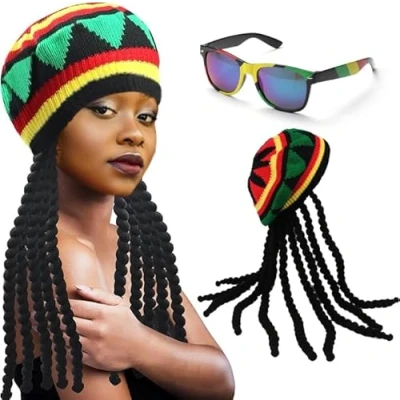 Komonee Rasta Hat Sunglasses Glasses Fancy Dress Up Reggae Dreads Wig Costume Accessory Halloween Bob Marley Cosplay Cap