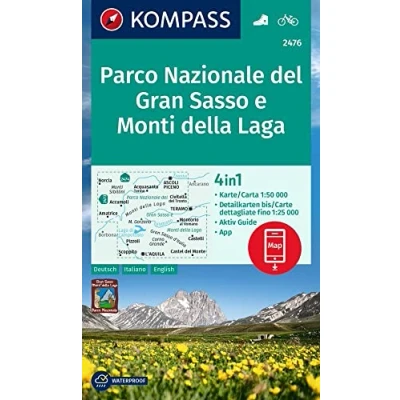 KOMPASS Wanderkarte 2476 Parco Nazionale del Gran Sasso e Monti della Laga 1:50.000: 4in1 mit Aktiv Guide und Detailkarten inklusive Karte ... Verwendung in der App. Fahrradfahren.