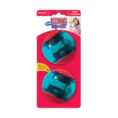 KONG Squeezz Action Ball Red Multi Textured Squeaker Interactive Fetch Toy For Large Dogs