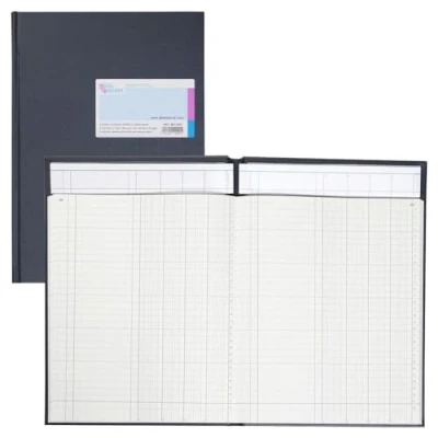 A4 column book / business book Contents: 96 sheets with page numbers, 80 g/m2 4 columns, 32 lines, same scheme on both sides, with header. Ceiling tape, grey Thread binding.