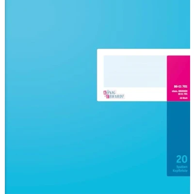 Account Book/store book Überformat (27.7 x 25.5 cm) Contents: 40 sheets, 80 g/m² 20 columns, 32 rows; scheme on 2 sides, with header High-gloss painted box, light blue, magenta Single layer Drahtgeheftet