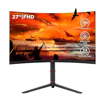 Specifications: This Full HD screen (1920 x 1080 px) has a response time of 1 ms and a contrast of 3000:1. The 27-inch screen is ideal when playing 1 to 2 meters away from your screen, but should be avoided when you are closer. Besides, its curved sides will enhance the feeling of immersion in the matter. [VA DALLE]: The colour palette is similar to an IPS panel. The viewing angle is slightly smaller than that of an IPS screen, but larger than that of a PC monitor with TN panel. PC gamer screens with VA panel differ primarily due to their contrast ratio. The difference between light and dark is very visible on this screen type. [RAF RATE]: 180Hz provides an even smoother image and even smoother graphics than 144Hz. This will be very convenient when you play on PC. Adaptability: the base of this screen is height adjustable. The screen can be tilted up to 45° on each side, but can also be rotated up to 180°. The screen can also be tilted forwards or backwards between -5 and 15°. [CAN]: 2 HDMI ports, one DisplayPort and one audio port. An HDMI cable and DisplayPort cable are included.