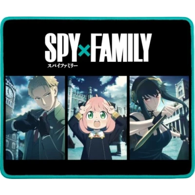 Konix Spy x Family Gaming Mauspad 32 27 cm rutschfeste Mikrofaseroberfläche Gummi Schwarz und Blau