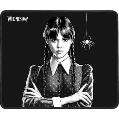Konix Wednesday Gaming Mouse Pad 32 x 27 cm Non Slip Microfiber Surface Rubber Spider Pattern Black