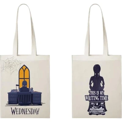 Konix Wednesday Tote Bag with Long Handles 38 x 42 cm 100% Polyester This Is Writting Time Design White