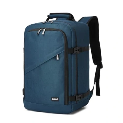 【Perfect Size for 40x30x20Ryanair Cabin Bags】: Measuring 40x28x20cm, our travel backpack is specifically designed to comply with Ryanair's personal item size policy. Please note that measurements may vary by 1-3 centimetres due to different measurement methods. 【Cleverly Organised & Spacious Design】: This underseat cabin bag 40x30x20 with multiple pockets for easy access during your fingertips while on the go. The main compartment employs a suitcase-style opening for convenient organisation. A dedicated front section keeps laptops, electronic devices and personal items tidy, while a quick-access zipped pocket stores tickets and mobile phones. 【Premium Reliable Material】: Crafted from tough, scratch-resistant polyester with reinforced stitching. Heavy-duty metal double zippers ensure durability, protecting your belongings trip after trip. 【Effective Backpack Accessories】: Features thick, ventilated back padding for airflow and support. Breathable, adjustable shoulder straps and a chest buckle ease shoulder strain. Smoothly slides over suitcase trolley handles for effortless airport manoeuvrability. 【Versatile Use】: The Kono cabin backpack is an ideal personal item for flights and perfect for international travel, university, weekends away, or business trips. A great gift for travellers (men or women) and an excellent choice for Christmas, holidays, or back-to-school season