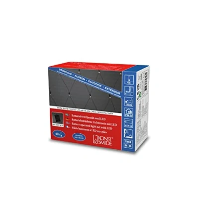 Konstsmide 3723 130 LED Light Net with Sensor and 6h 9h Timer, Frosted, 40 Warm White Diodes, Battery Operated, Outdoor (IP44), Black Cable