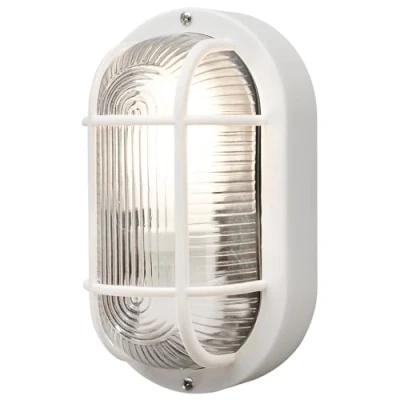 Konstsmide 7650 200 Elmas Bulk Head Outdoor Wall Light Mains Powered / W: 12cm D: 10.5cm H: 20cm 1 x 40 W E27 Max Lamp Clear Ribbed Glass Plastic IP44 Outside White