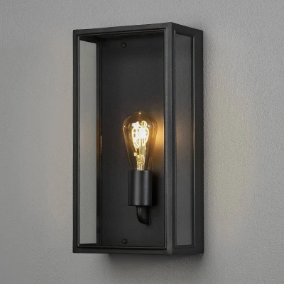 Konstsmide Carpi Outdoor Box Style 1 x 60 W E27 Max Wall Lamp/Clear Glass/IP44/Outside Light, Alloy Steel, W, Black