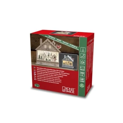 Konstsmide Quality Indoor Christmas Lighting Wooden Scene - Wooden Christmas Decorations Christmas window lights in natural wood by Konstsmide, with its four warm white LEDs, makes your living room shine in a beautiful light with its decorated winter town scene, has its own story to tell Decorate with this Christmas scene on the table, the window sill or the fireplace inset. Battery lights operation (2xAAA 1.5V not included) for your ideal product placement This electric wooden decoration light from Konstsmide the inventor of the wooden electric candlestick, also has a very special story to tell. A an original that deserves a special place in your heart and your Christmas home With the protection class IP20, this wood welcome light can provide a friendly atmosphere. Height 17.7cm Width 18cm Depth 8cm