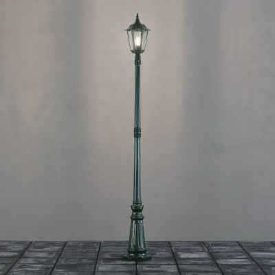 Konstsmide Firenze Post Single Column Outdoor Light / 2.1m High 1 x 100 W E27 Max Lamp Clear Glass Aluminium IP43 Outside Green