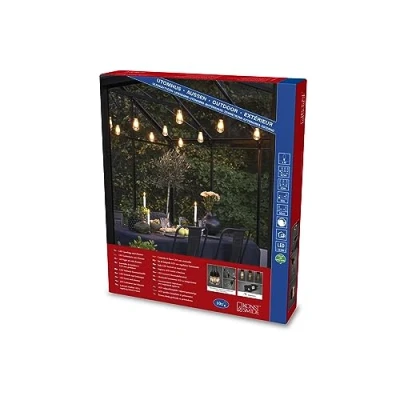 Konstsmide Garden Lights Outdoor Lights Quality Festoon Garden Lights and Christmas Decorations - Independantly Tested to Ensure the High Standards Hanging festoon lights outdoor lighting, magic highlights at night! With this high-quality LED light set with these outside lights you can lighten your garden or your terrace in a soothing light With 10 bright bulbs and amber white diodes give a traditional look, every garden and every house shines in a beautiful glow The high-quality light figures of this light set make your pergola, treetops and sconces shine efficiently in the dark. Look forward to the perfect atmosphere for exuberant summer parties or romantic candlelit dinners With protection class IP44, this beer garden chain can provide both indoors and outdoors a friendly atmosphere. Handy built-in dimmer, 10m of cable 4.5m of lights, 50cm Spacing, Each Drop 43cm