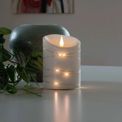 Konstsmide Large Candles/3D Living Operated Flameless Real Wax/Wire Lights/4 or 8 Hour Timer Function/14 x 10 cm/Warm LED, White Battery Candles