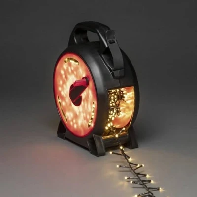 Konstsmide Quality Christmas Outside Lights - Independently Tested Fairy Lights Plug in to Ensure the High Standards. Tired of the same problem every year? These LED string lights with Konstsmide's easy cable reel storage solution are your answer Simply magical! Mains powered outdoor lights these Fairy lights you can place this light set in trees, shrubs or other garden elements, these can also be used as indoor christmas tree lights. Less is more? This high-quality fairy-string proves the opposite! When the 600 LED amber white outside lights are lit in the dark, your house and garden will surely reap more than just an admiring look With the protection class IP44, this light chain can provide a nice atmosphere both indoors and outdoors. It provides you with the best protection against solid foreign bodies and splashing water 13.18m of lights and 10m lead, the cable reel with integrated transformer storage, so you do not lose your power adaptor, making the tangled mess of light strings a thing of the past with Konstsmide innovative cable reel range. Total solution for packing away and storing your lights for many years to come