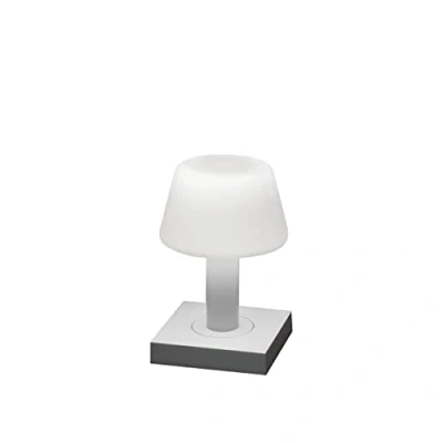 LED outdoor table lamp Monaco with glass shade and square baseVersatile, mobile and atmospheric presents LED patio lamp Monaco. It is designed in the form of a small table lamp and is composed of a square, colored aluminum base and a truncated cone shade made of opal glass. The shade integrates the LED light source, which is controlled via the touch control surface on the base. In addition to switching, dimming is possible, and switching between two warm white tones is also possible. The equipment with rechargeable battery and the splash water protection allow use in numerous environments.- infinitely dimmable- light color adjustable (2,700 K / 3,000 K)- including charging station with USB cable (for dry indoor use)- light duration per battery charge: 9 h at 100% light output- protection class: IP54